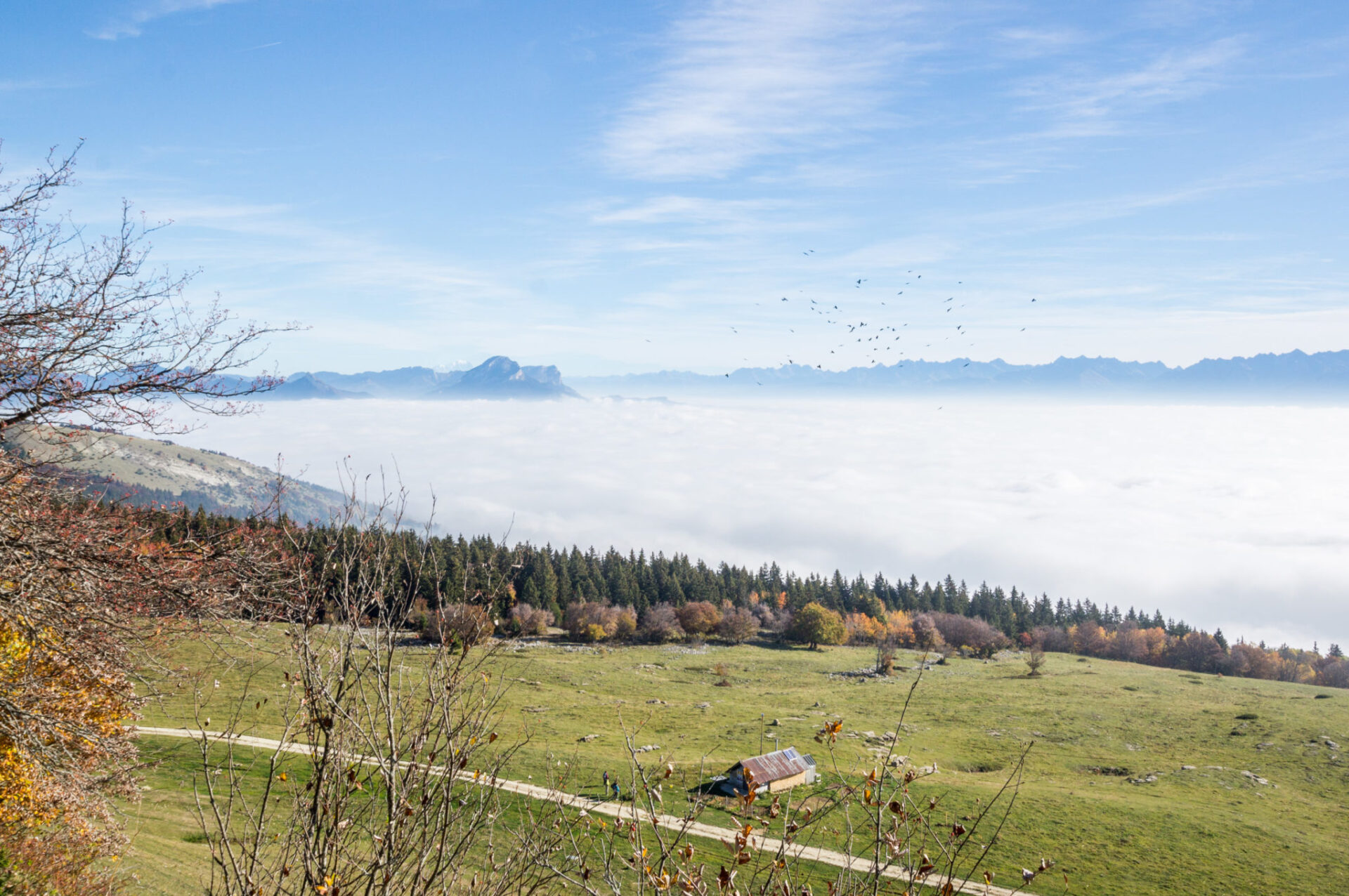 Le ciel est gris en plaine, c’est avec un immense plaisir que nous nous élevons en compagnie d’un ami, direction le parking de la Molière ! La moitié du trajet se fait dans la brume, c’est en montant au Col de la Croix-Perrin que nous franchissons la mer de nuage. Nous arrivons au parking, quelques voitures y sont déjà installées, il fait frais mais le soleil est présent pour nous réchauffer !