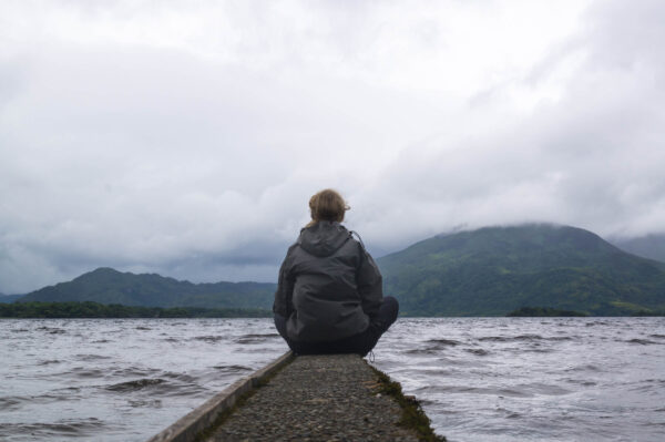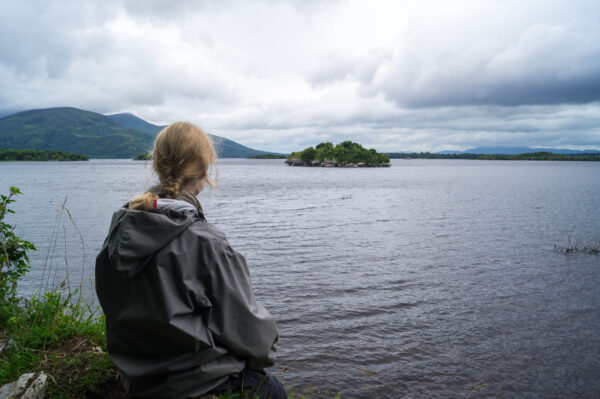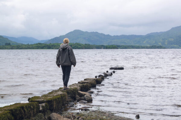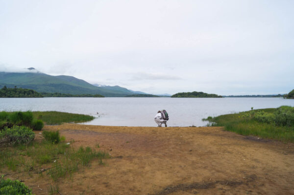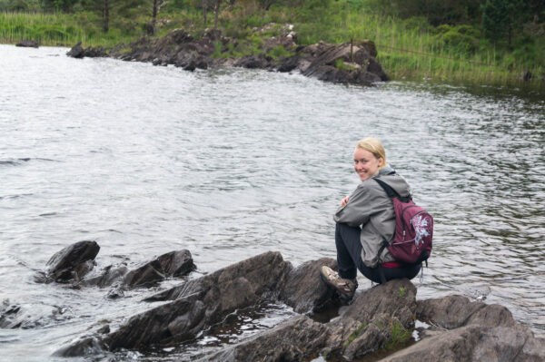 Nous longeons d’abord le grand Lough Leane, où nous nous arrêterons pour manger plus tard. Je m’avance d’ailleurs sur un ponton où j’aurais pu passer la journée entière. Le son de l’eau remuant doucement tout autour de moi, les collines voilées par le brouillard, pas un bruit sur le lac.