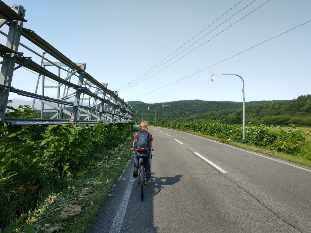 Nous découvrons d’abord Bifuka par le WWOOFing, le mini-bus à réserver d’avance venu expressément nous récupérer à la gare, à la demande de notre hôte, nous fait passer par des kilomètres de forêts et de pâturage. La ville, et par extension tout Hokkaido, semble bien préparée aux hivers rudes, les maisons et fermes ne sont pas construites de la même façon, les routes sont bordées de piliers qui en marquent les limites, et on trouve même de long dispositifs anti-blizzard.