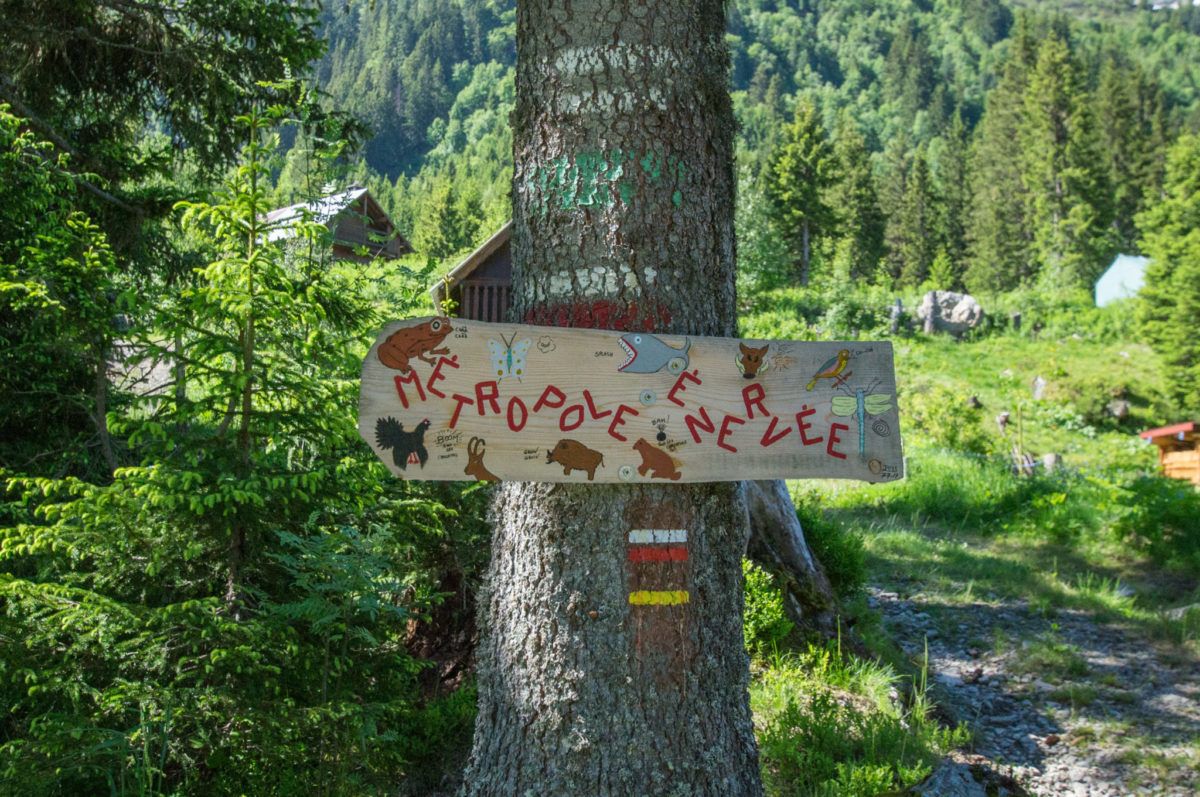 Depuis les Chalets de la Barrière (ci-dessus), un panneau indique le parking, le temps indiqué nous a semblé excessif (plus long que l’aller qui était en monté), mais il est juste. Cette fin de randonnée passe par un chemin carrossable en zigzag long, très long même lorsque notre esprit se voit déjà rejoindre la voiture. Les moustiques sont légions, nous empêchant de manger notre repas de midi. Pour résumer, préparez-vous mentalement pour cette fin de randonnée 🙂