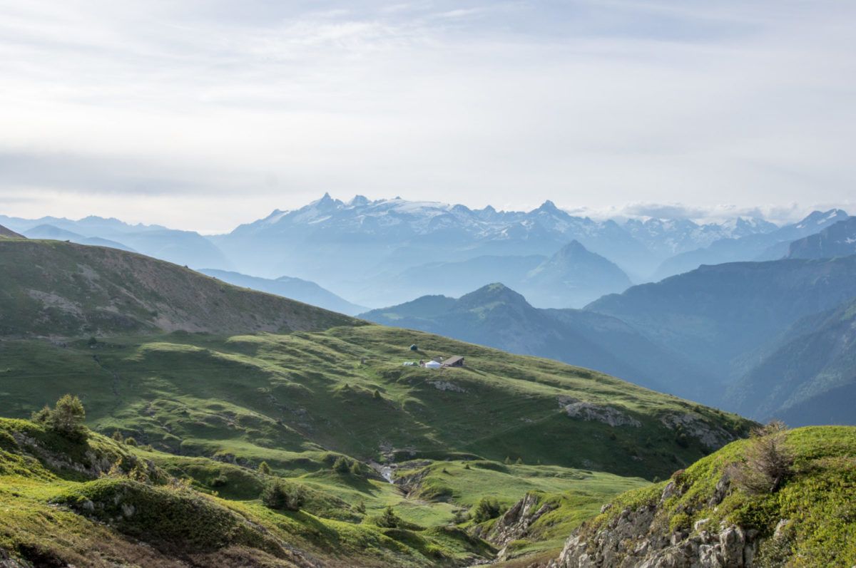 Le paysage sur Belledonne et le Vercors derrière nous s’embellit à chaque pas, et Camille ne pourra s’empêcher de s’exclamer tous les 50 mètres pour dire la beauté du lieu.