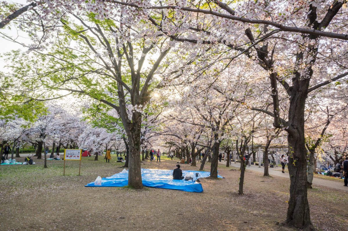 Pour s’assoir à l’extérieur, que ce soit sur de la terre, du sable, de la pelouse, ou même un banc, les japonais aiment bien apporter avec eux des bâches pour éviter de se salir le popotin. Lors de la floraison des cerisiers japonais, la tradition est de pic-niquer en dessous, vous verrez alors des marées d’immenses bâches bleues tapisser le sol (ce qui jure totalement avec la beauté des arbres… mais que voulez vous, le Japon est rempli de contradictions 🙂 )