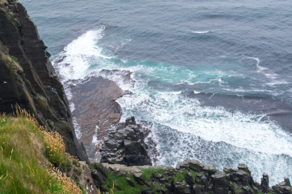 Camille C. : Le bus 350 passe par le Wild Atlantic Way, c’est à dire par la côte. Le voyage a beau durer 2 heures, on ne le regrette pas, les paysages sont magnifiques. D’un côté la mer et ses » plages » constituées d’immenses plaques rocheuses, et de l’autre des collines recouvertes de cailloux. On y croise très peu de monde, quelques pêcheurs et campeurs seulement. De la quiétude et de la grandeur qui donne envie de continuer à explorer ce fameux Way, chose que l’on fera dans les jours qui suivent…