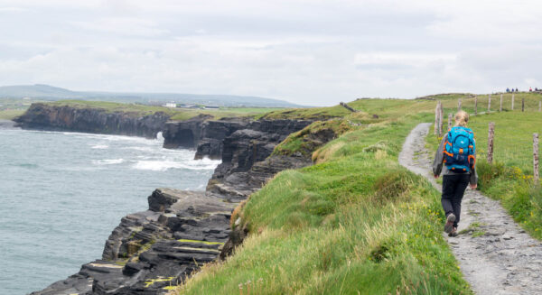 Le programme est simple, le bus arrive à 11h30 aux Cliff, nous faisons une randonnée (2h30 annoncées) jusqu’à Doolin où le bus nous reprend à 18h30 pour Galway.