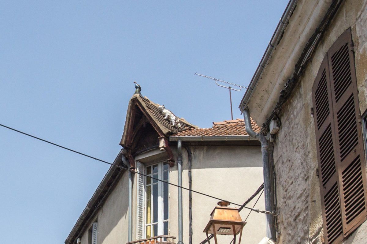 On admire les belles maisons à pans de bois datant des XV et XVIèmes siècles, les vieilles pierres, le château des Ducs de bourbons qui, une fois sur l’esplanade, ne ressemble à aucun autre. On déambule dans les petites ruelles, nous amusant à en découvrir les petits détails (là un serpent sculpté, et ici la statue d’un chat en pleine chasse…), et surtout, on prend le temps de s’asseoir et de savourer le calme de cette petite ville et d’en apprendre un peu plus…