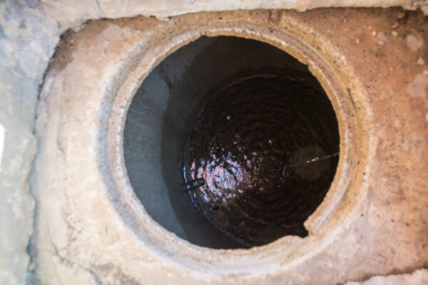 Après avoir déplacé la dalle, un léger filet coule, il va falloir tendre le bras !