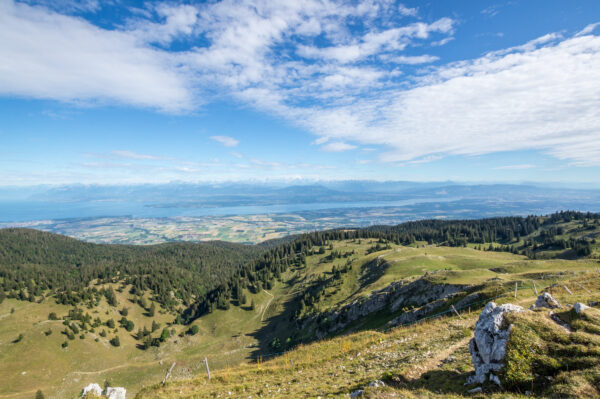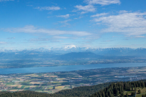 Quant bien même, un beau cadeau nous attend en haut, le panorama sur le lac Léman, et une belle vue sur le Mont Blanc !