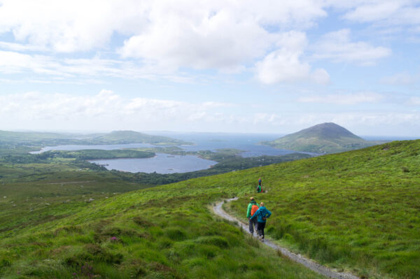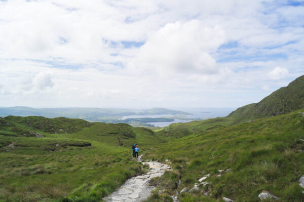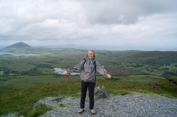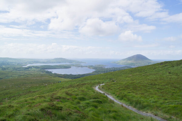 Il ne faut pas abandonner, arrivé a quelques mètres du sommet, on est époustouflé. Soudain, on voit vraiment tout ! Quelle grandeur, quelle magnificence ! La Ballinakill Bay, l’Atlantique, les îles Inis, le Kylemore Lough et son abbaye, les Twelve Pins, le National Park…