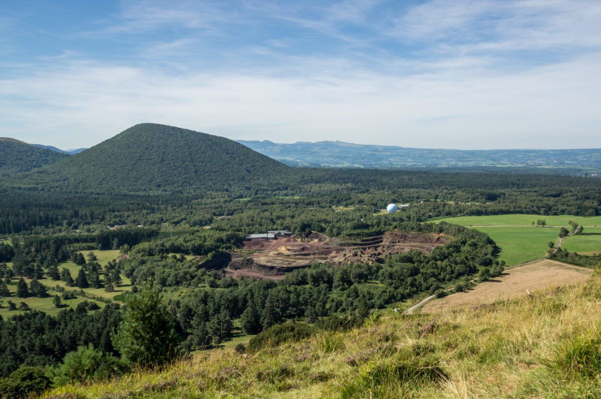 Au pied de notre Puy des Gouttes, on retrouve le Puy de Lamptégy, qui ne ressemble plus beaucoup à un puy, ou selon le point vue, y ressemble un peu plus. Après la Seconde Guerre Mondiale, il a été exploité pour sa pouzzolane jusqu’à être complétement rasé. Aujourd’hui c’est un site touristique qui se visite en petit train.