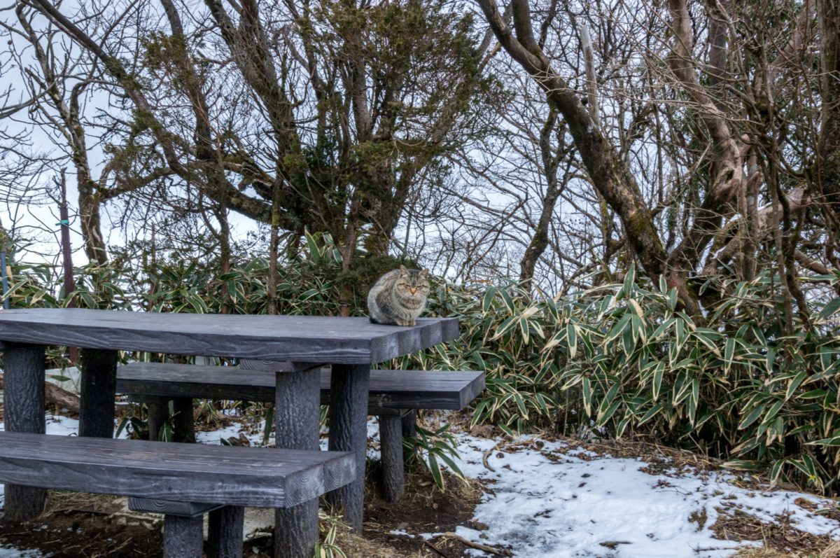 On retrouve un restaurant et des toilettes au sommet, nous décidons de nous installer à une table pour manger nos onigiri, préparés avec amour le jour précédent (« Oishii ! » s’exclameraient les japonais).