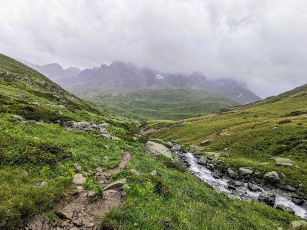 La route depuis Grenoble en passant par la Grave et le col du Grand Galibier est déjà magnifique. Nous sommes directement dans l’ambiance. Malheureusement pour nous aujourd’hui, la météo s’est trompée, et nous passerons l’intégralité du premier jour sous la pluie, jusqu’au planté de tente vers 18h. Heureusement, l’itinéraire est un aller-retour, nous profiterons de la vue le troisième jour. Les photos du Jour 1 de cet article sont donc issues du 3ème jour 😉