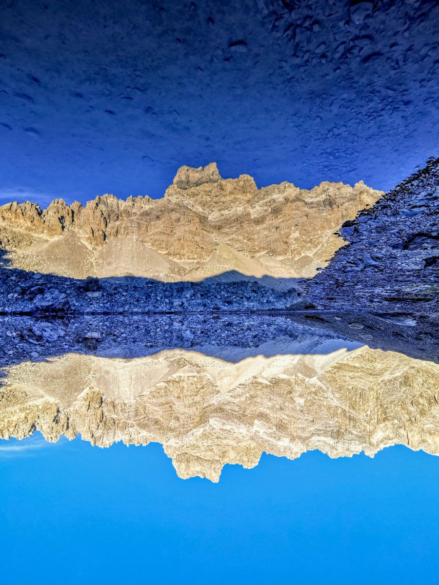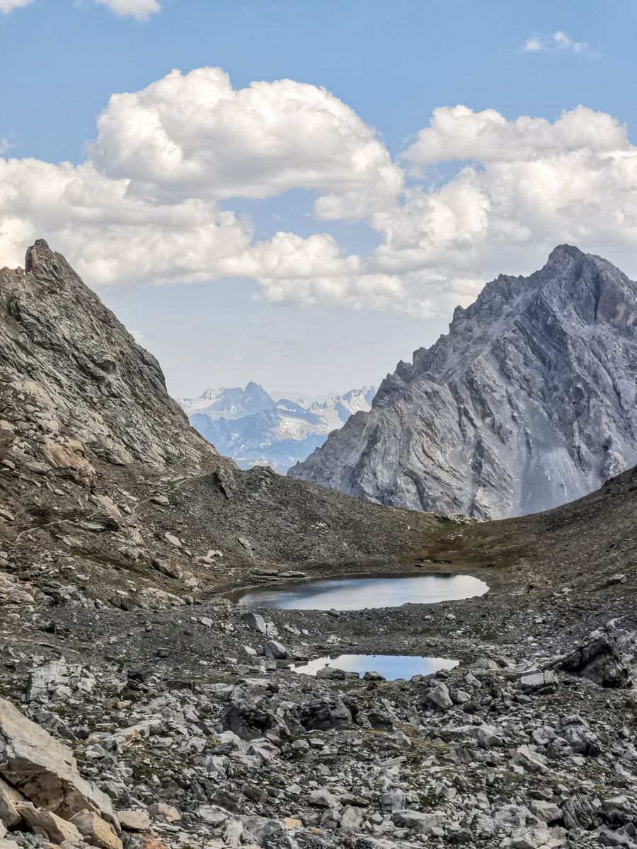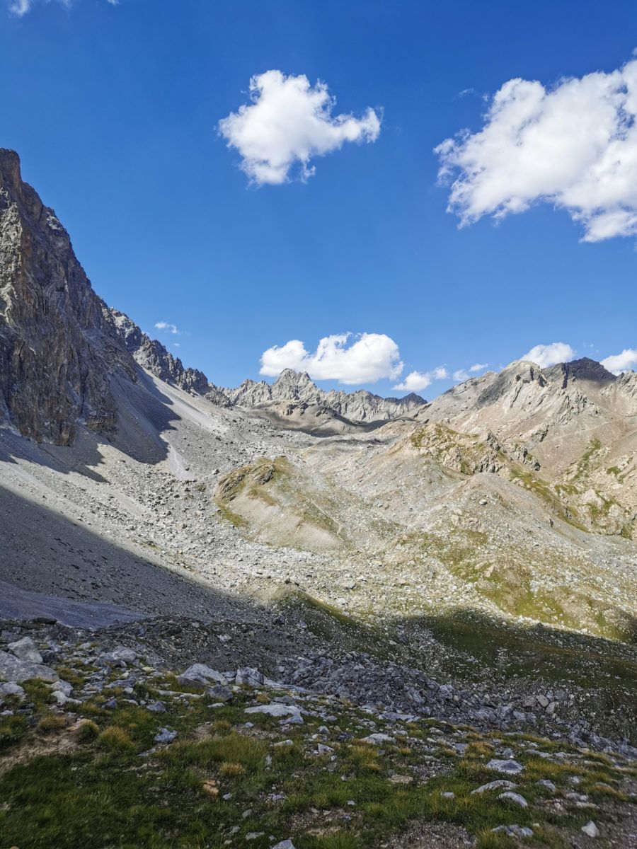 Ça y est, nous sommes en Italie ! La vue est beaucoup plus rocheuse de ce côté. Après un bon repas au sommet du col, à l’abri du vent derrière de grosses roches, nous partons en direction du Lago Vallonasso.