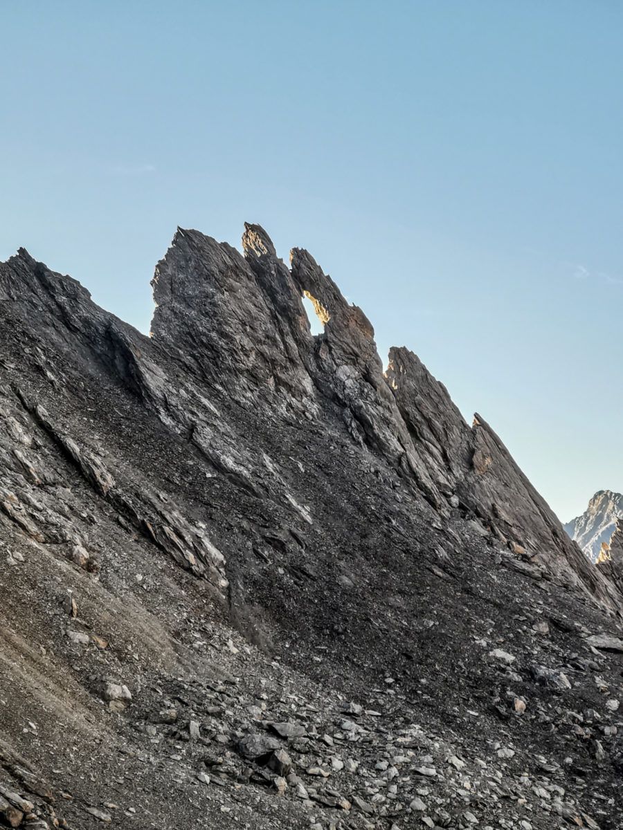 Après le petit-déjeuner, et après avoir signé le jolie dessin de notre copain sur le cahier du refuge, notre objectif est la tête de la Frema, 300m de dénivelé ! Une partie du groupe l’a déjà gravi hier sans les sacs, en « after-trek », n’ayant pas compris que nous le faisions aujourd’hui. Les nuages sont au rendez-vous au sommet de la tête de la Frema, renommé « la montagne du destin » pour l’occasion.