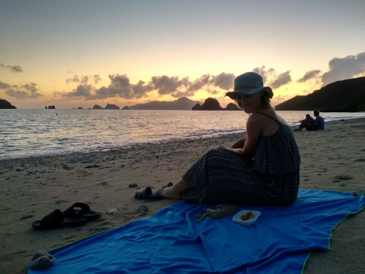 Nous décidons au final de ne rester qu’une semaine, cependant après six jours, nous apprenons au matin qu’un second typhon est à l’approche, et qu’il vaut mieux partir aujourd’hui si nous voulons avoir un bateau de retour… Le ferry étant à 16h, nous profitons quand même du dernier jour en allant voir les poissons à Furuzamami (40 minutes de marche) une dernière fois, d’aller dans un super restaurant local, et de replier notre tente tranquillement. Une dame nous voyant marcher au bord de la route avec nos 5 sacs nous récupère et nous dépose au terminal, parfait 🙂